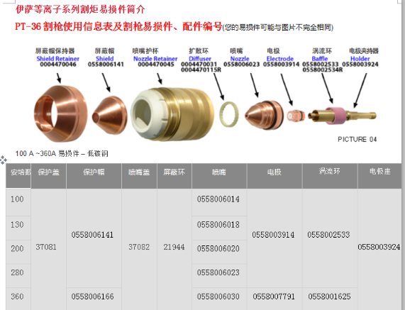 伊薩系列等離子易損件